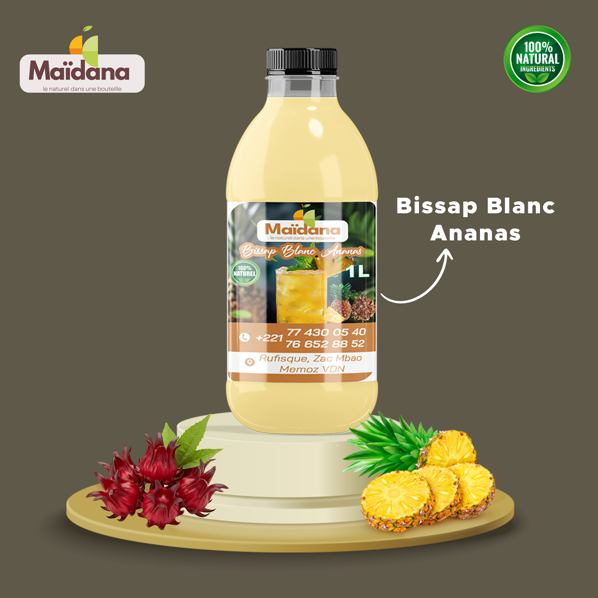 JUS DE BISSAP BLANC ANANAS FORMAT 1L